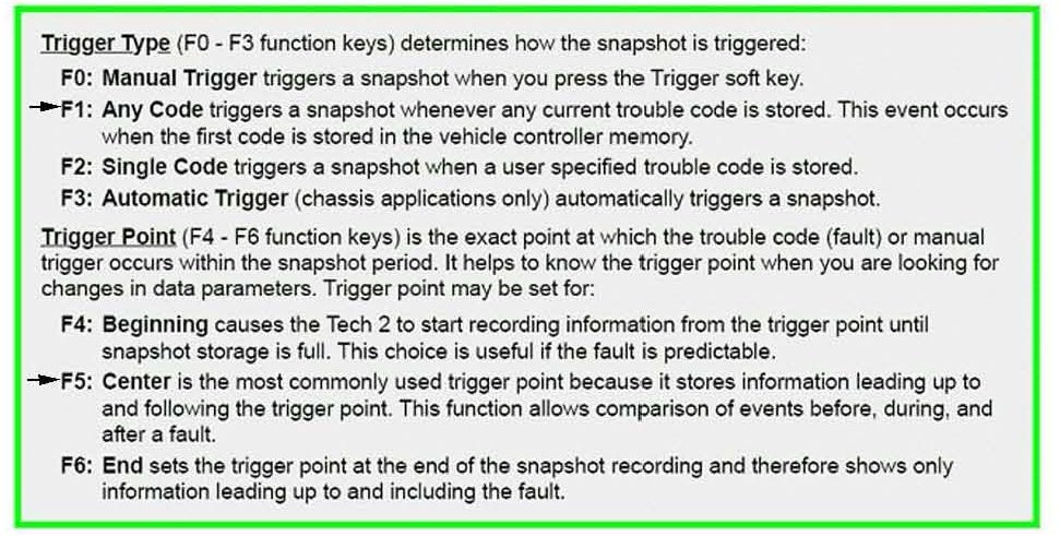 - When the fault occurs, the Tech 2(R) will automatically start recording if the preferred settings (F1 and F5) are selected.