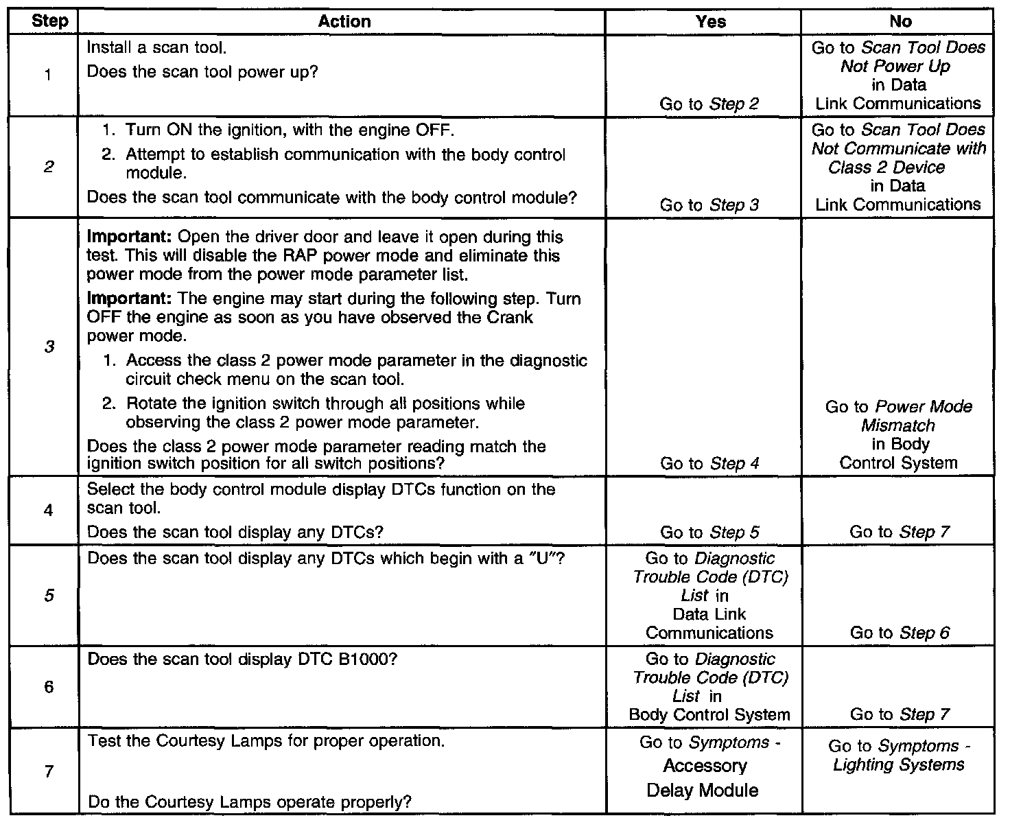 2. Lack of communication may be due to a partial malfunction of the class 2 serial data circuit or due to a total malfunction of the class 2 serial data circuit. The specified procedure will determine the particular condition.
