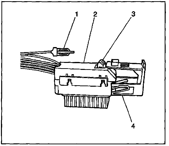 7. Disconnect the SDM wiring harness connector (1) from the SDM (3).