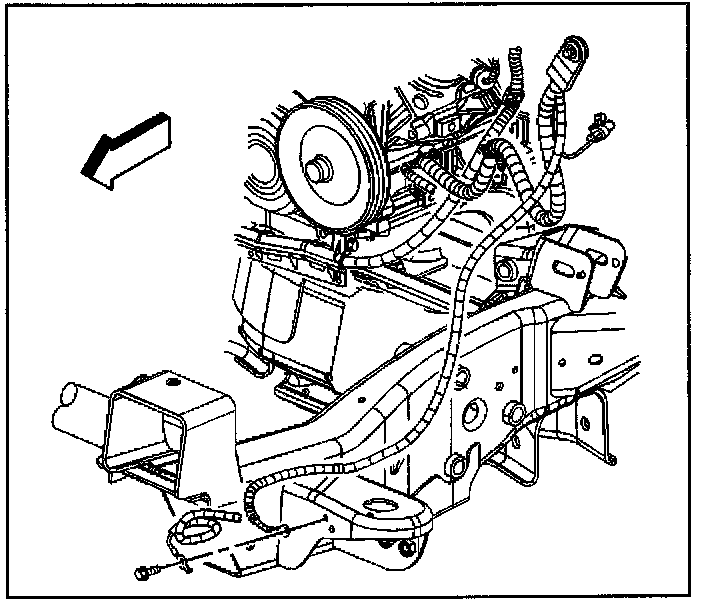 4. Remove the forward lamp wiring harness ground/negative cable bolt.