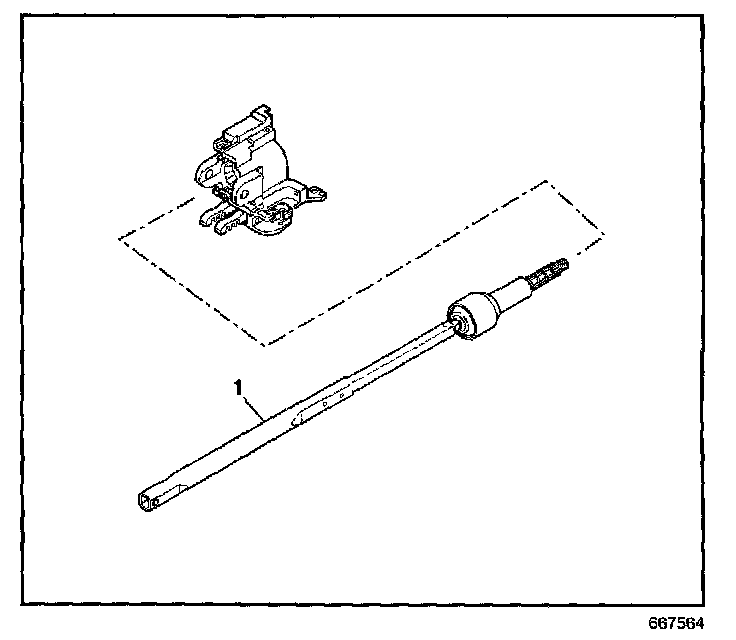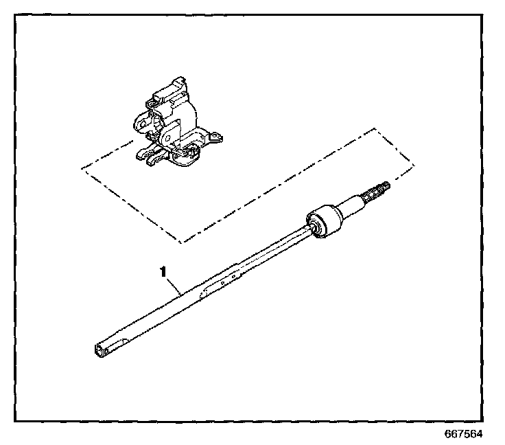 12. Remove the steering shaft (1) from the steering column tilt head assembly.