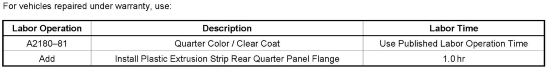 Paint Abrasion/Peeling on Rear Lower Quarter Panel Flange (Repair, Paint and Install Plastic Strip)