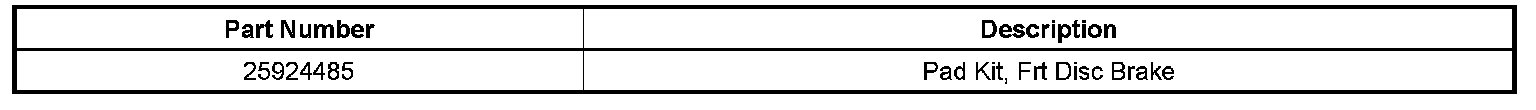New front brake pads have been released to correct this condition. Replace the front brake pads with P/N 25924485. Refer to Front Disc Brake Pads Replacement procedure in SI.