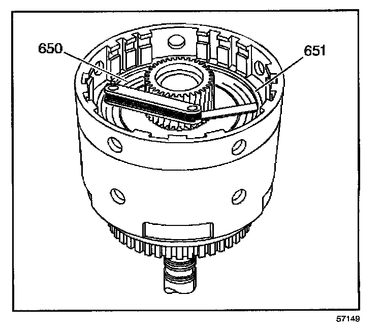 FORWARD CLUTCH PISTON TRAVEL CHECK1. Use feeler gauges to check the forward clutch plate travel. Check travel between the forward clutch backing plate retainer ring (651) and the forward clutch selective backing plate (650).