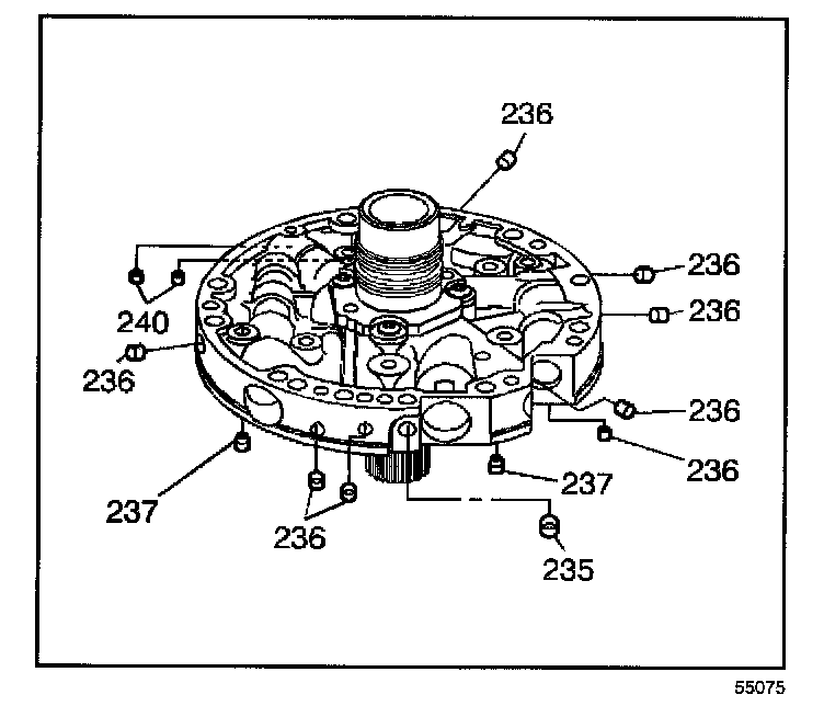 1. Inspect the pump cover, all check valve retainer and ball assemblies (237), cup plugs (235, 236) and orificed cup plugs (238, 240).