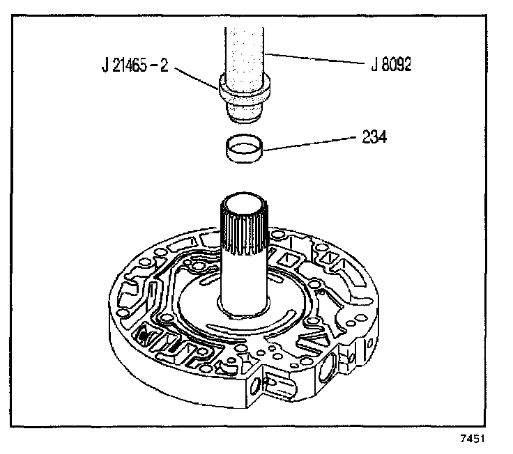 1. Using the J 21465-2 and the J 8092, install a new stator shaft front bushing (234).