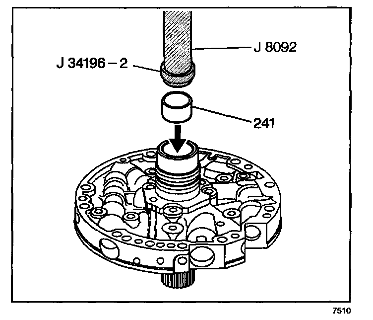 2. Using the J 34196-2 which is part of kit J 34196-B and the J 8092, install the stator shaft rear bushing (241).