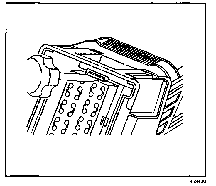 7. Insert the J 44020-4 (GM P/N 15314260) tool into the 2 triangular cavities on each side of the terminal at the front of the connector.