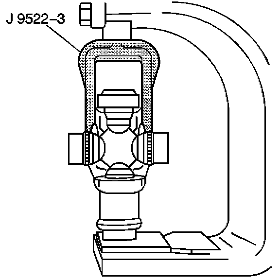10. Place the J 9522-3 on the open horizontal bearing cups. Press the lower bearing cup out of the yoke ear.