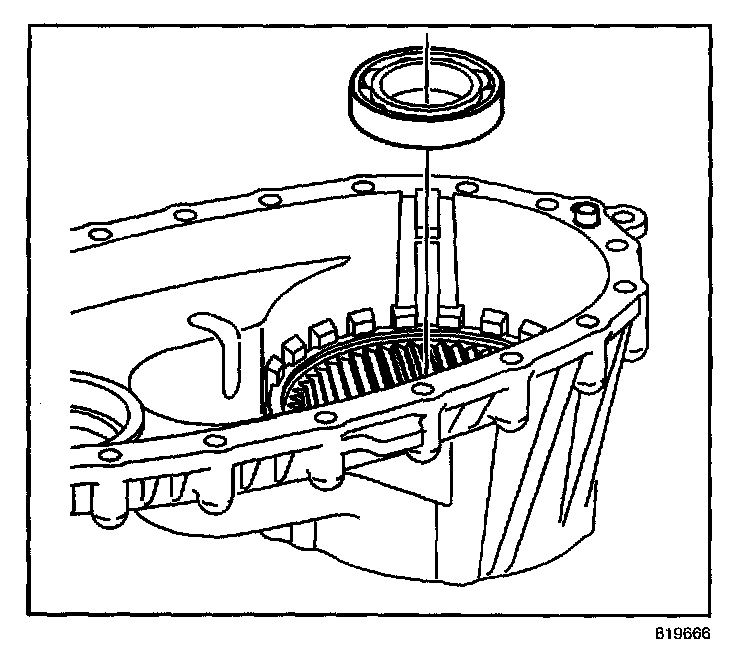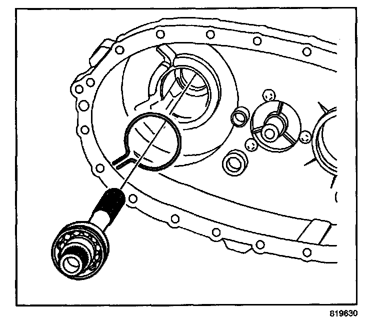 49. Install a NEW retaining ring for the rear output shaft bearing.