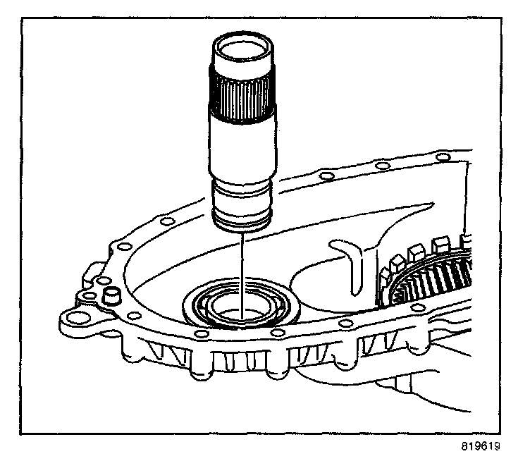 4. Install the seal for the shift detent lever shaft. The seal will install using hand pressure. The spring side, or opened side, of the seal faces outward.