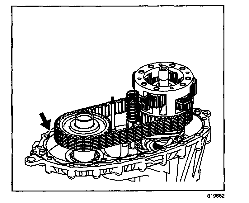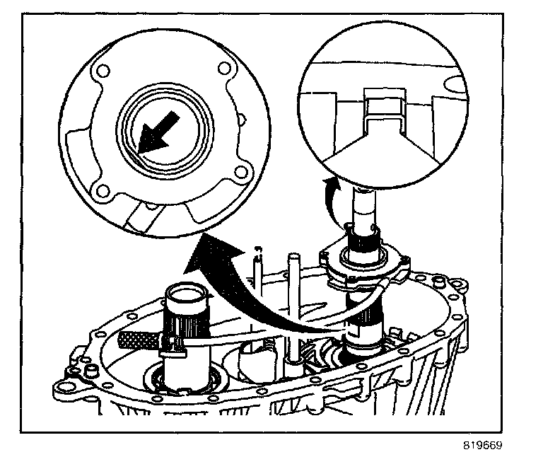- Turn the mainshaft to align the slot on the inner lockup hub with the large tooth area on the lockup shift assembly hub.