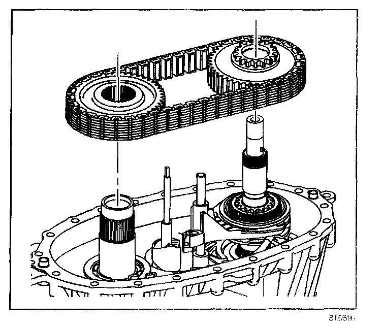 - Align the drive sprocket engagement teeth with the lockup shift assembly hub teeth.