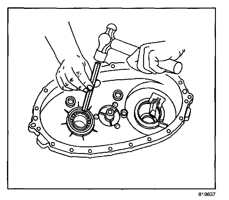 - Use a hammer and a brass drift only on the outer bearing race.
