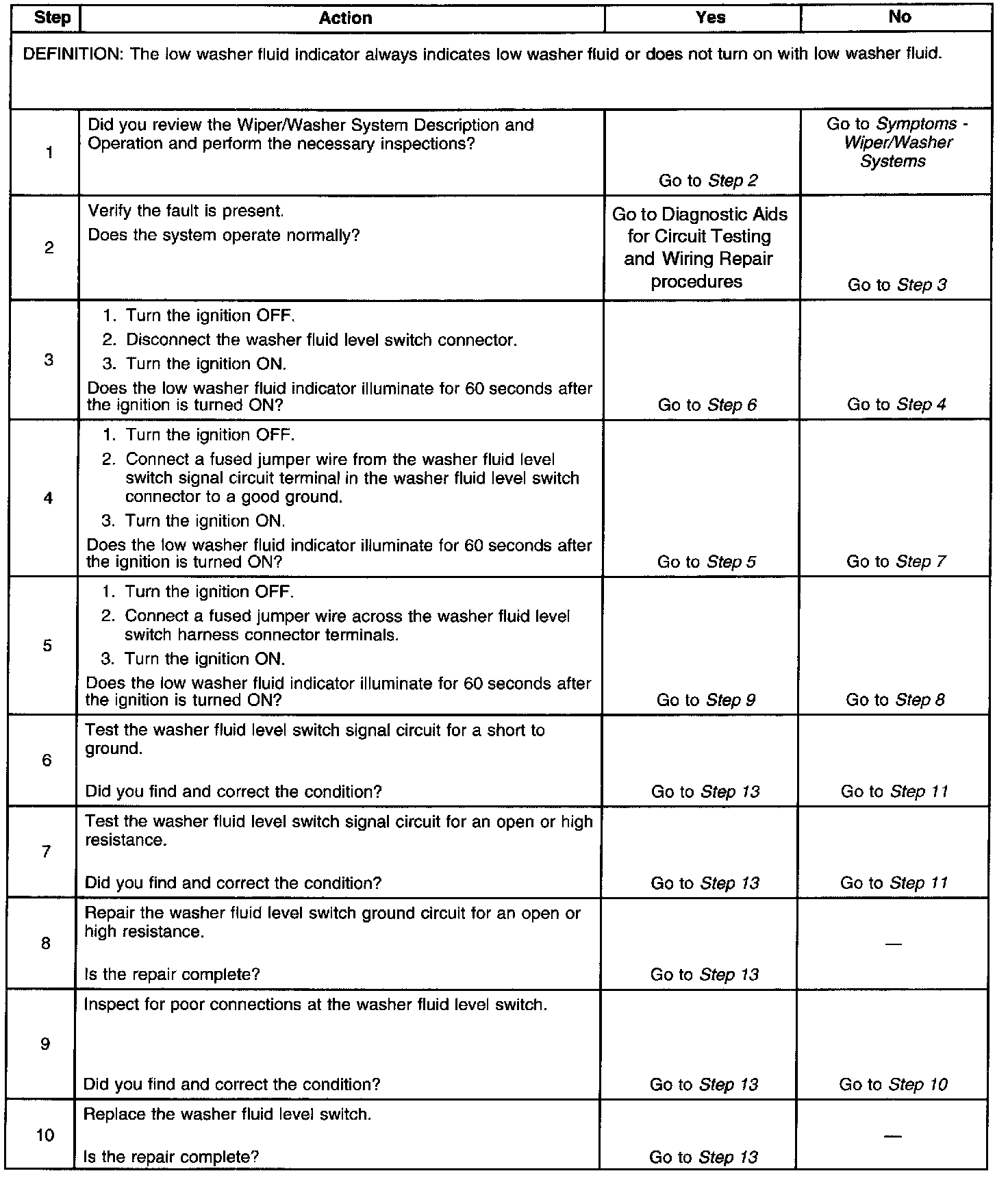 Low Washer Fluid Indicator Malfunction