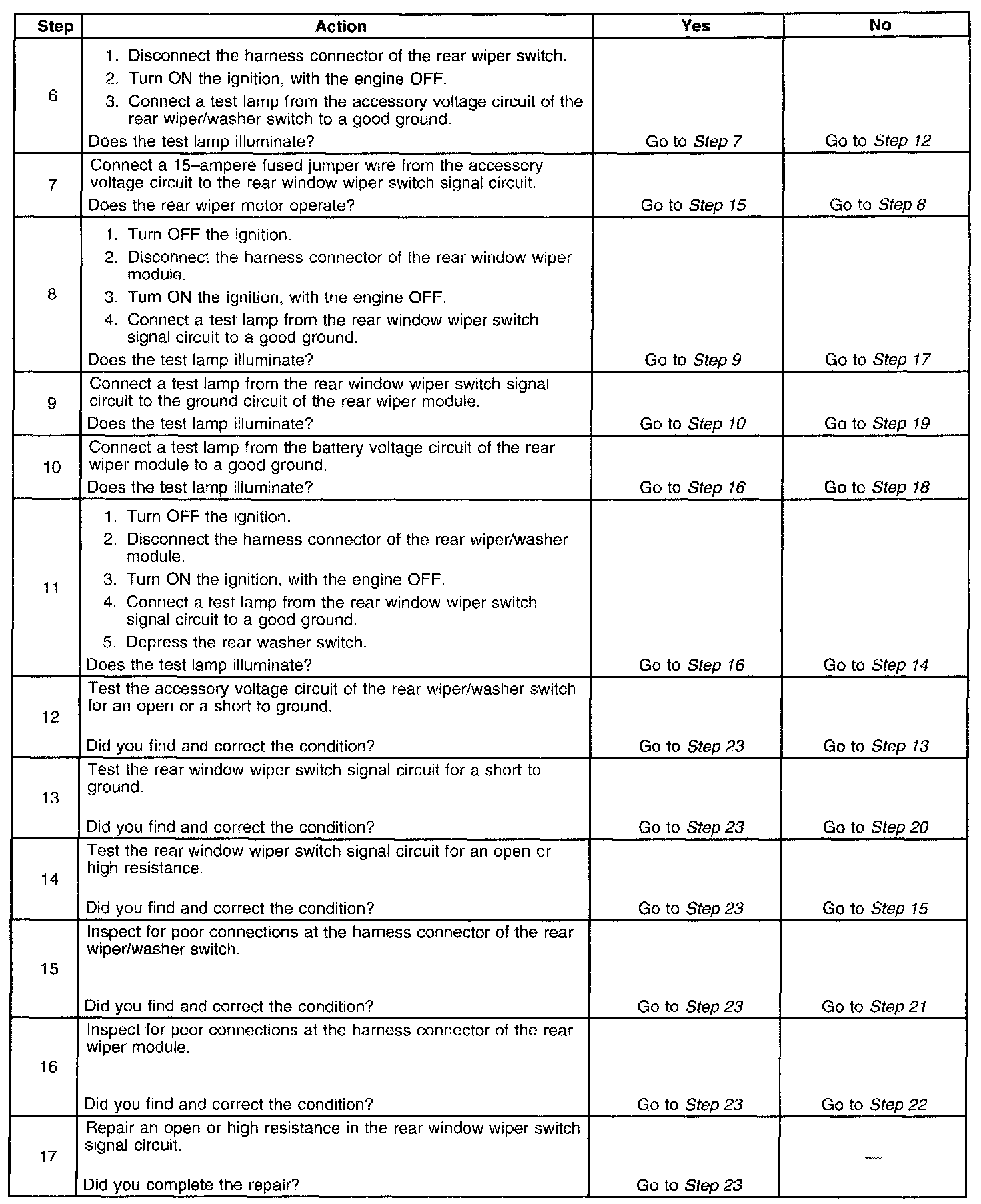 Wiper Inoperative - Rear