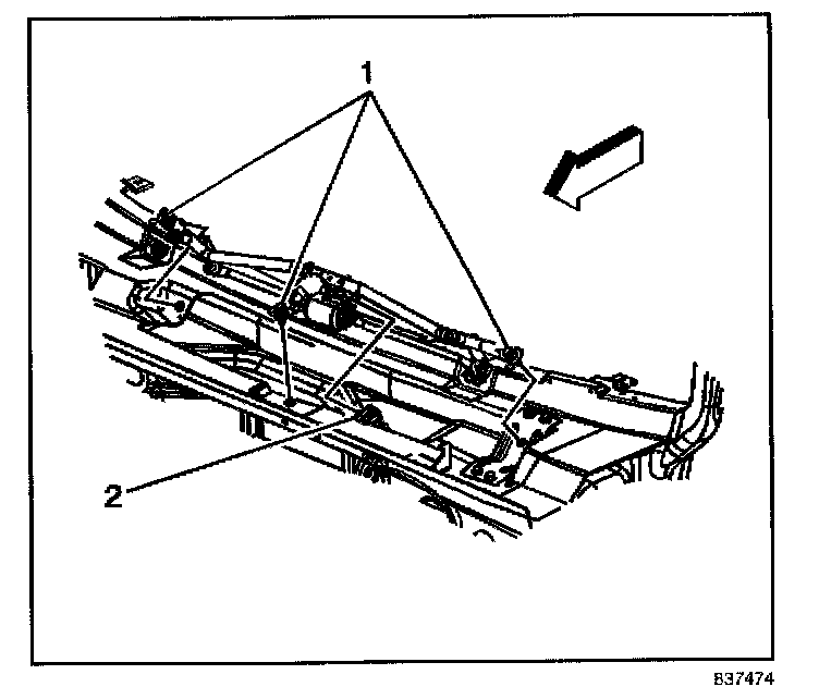 2. Remove the bolts (1) retaining the transmission to the vehicle.