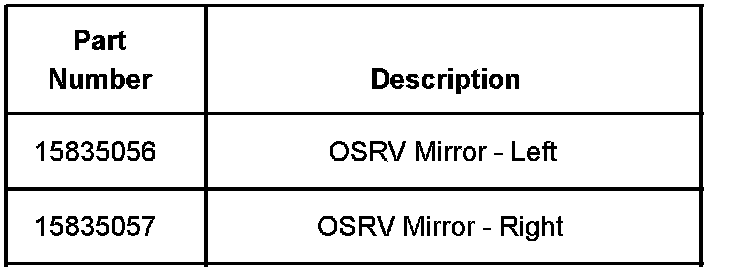 The outside rearview mirrors have been redesigned for the 2006 HUMMER H2 and are a much improved design over those used on prior models. The new mirrors have a different appearance than the original equipment 2003-2005 mirrors. Should you have the need to replace a mirror on a 2003-2005 H2, you should replace both mirrors as the new mirrors are now all chrome. The new design mirrors are P/N 15835056 (left) and P/N 15835057 (right).