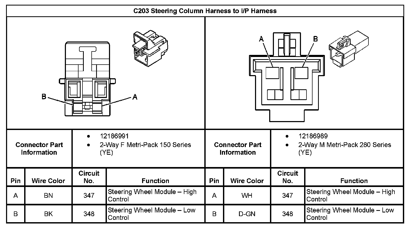 C203 Steering Column Harness To I/P Harness: