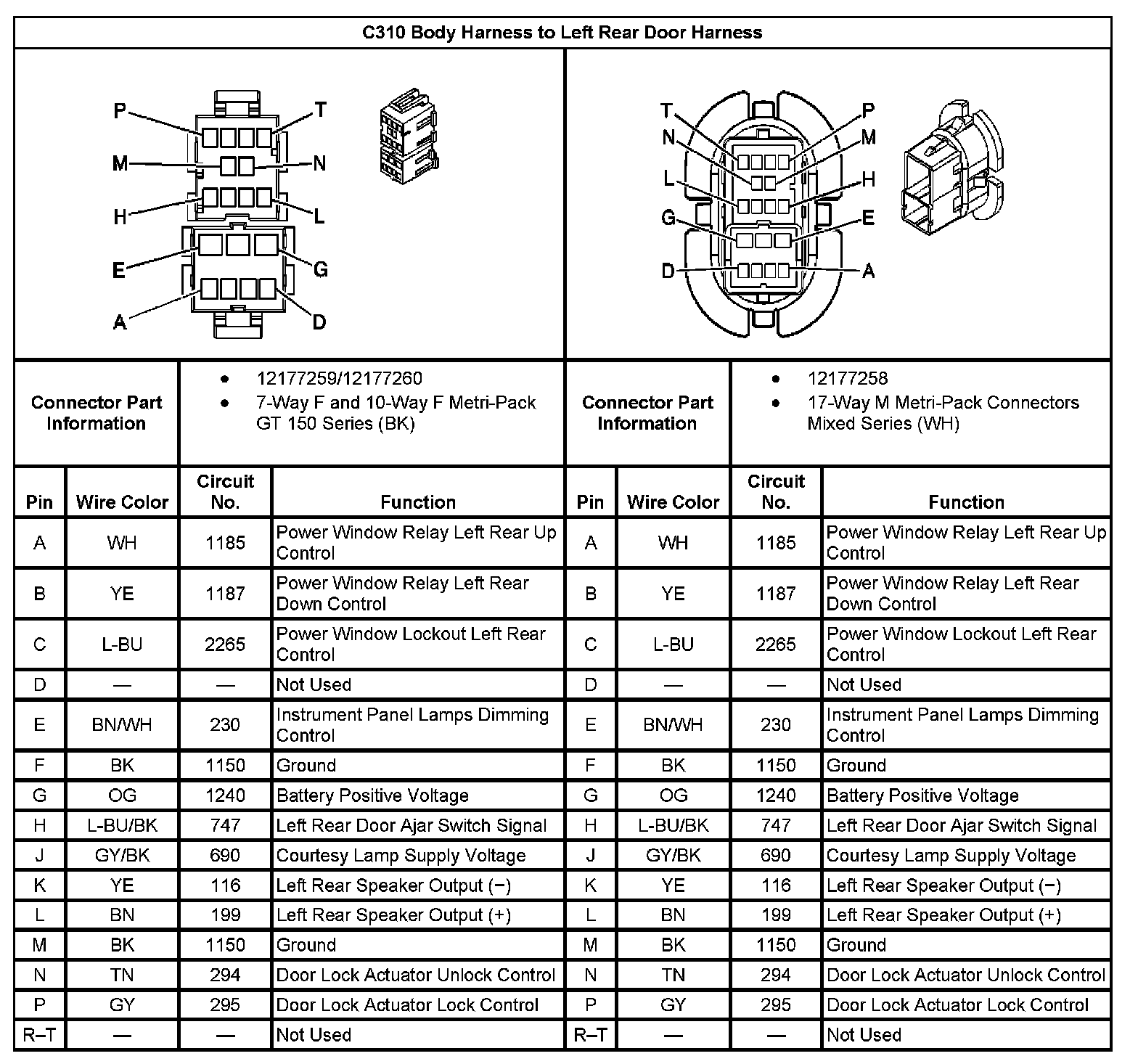 C310 Body Harness To Left Rear Door Harness: