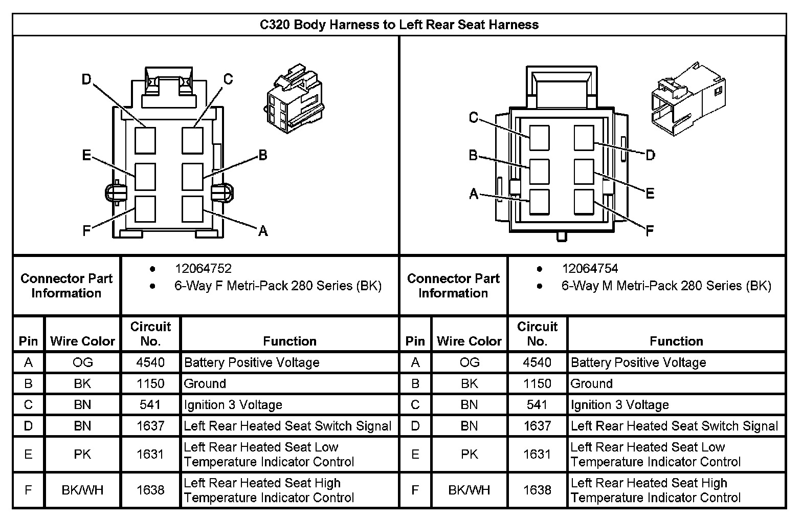 C320 Body Harness To Left Rear Seat Harness: