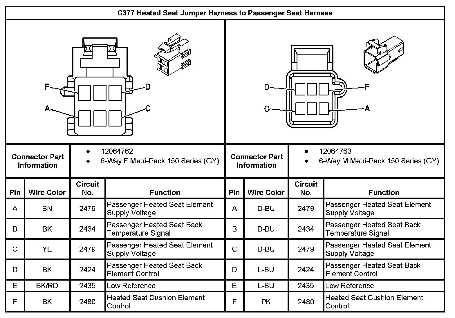 C377 Heated Seat Jumper Harness To Passenger Seat Harness: