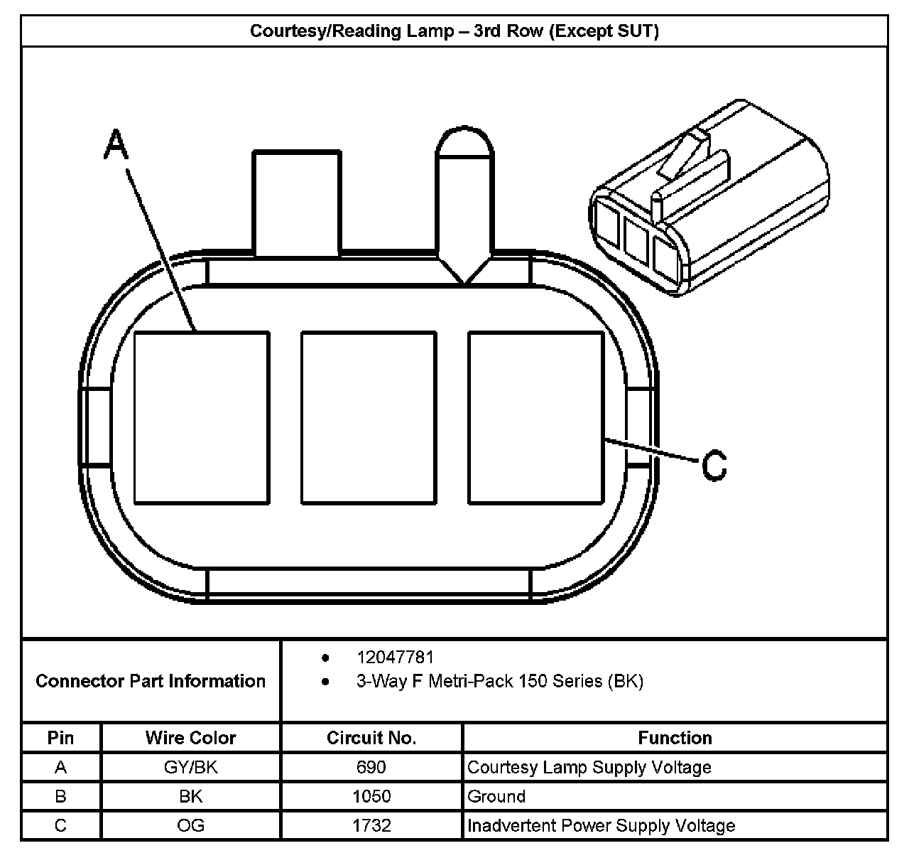 Courtesy/Reading Lamp - 3rd Row (Except SUT):
