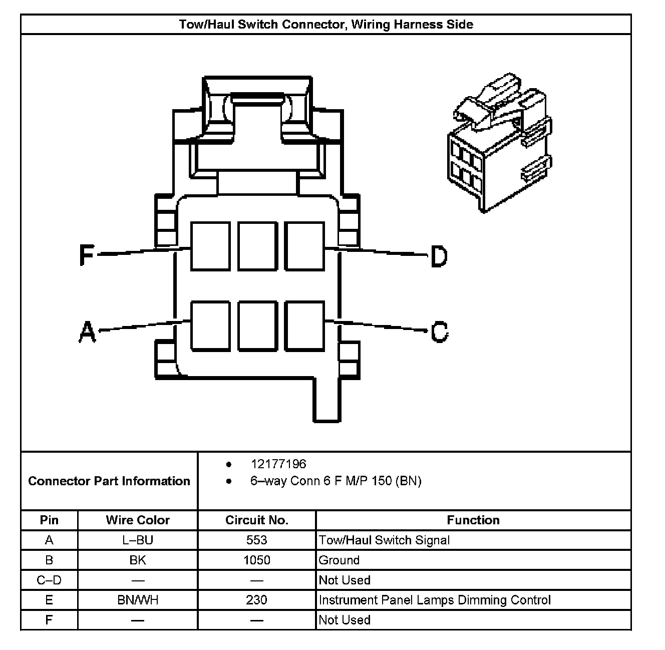 Tow/Haul Switch Connector, Wiring Harness Side: