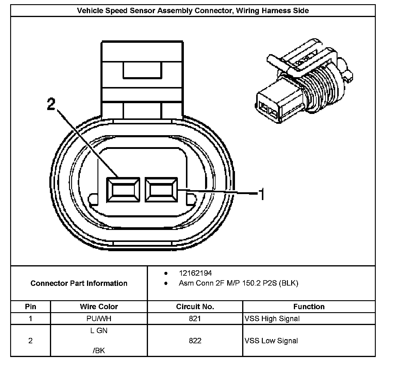 Vehicle Speed Sensor Connector, Wiring Harness Side: