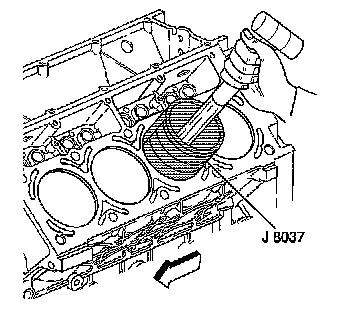5. Install the J 8037 onto the piston and compress the piston rings.