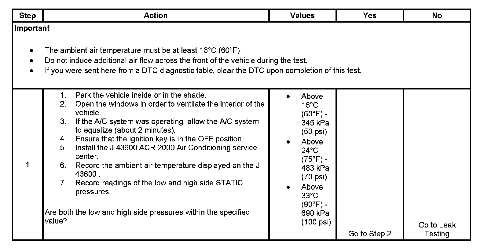 1. This step determines if there is enough refrigerant in the A/C system in order to operate the system without damage.