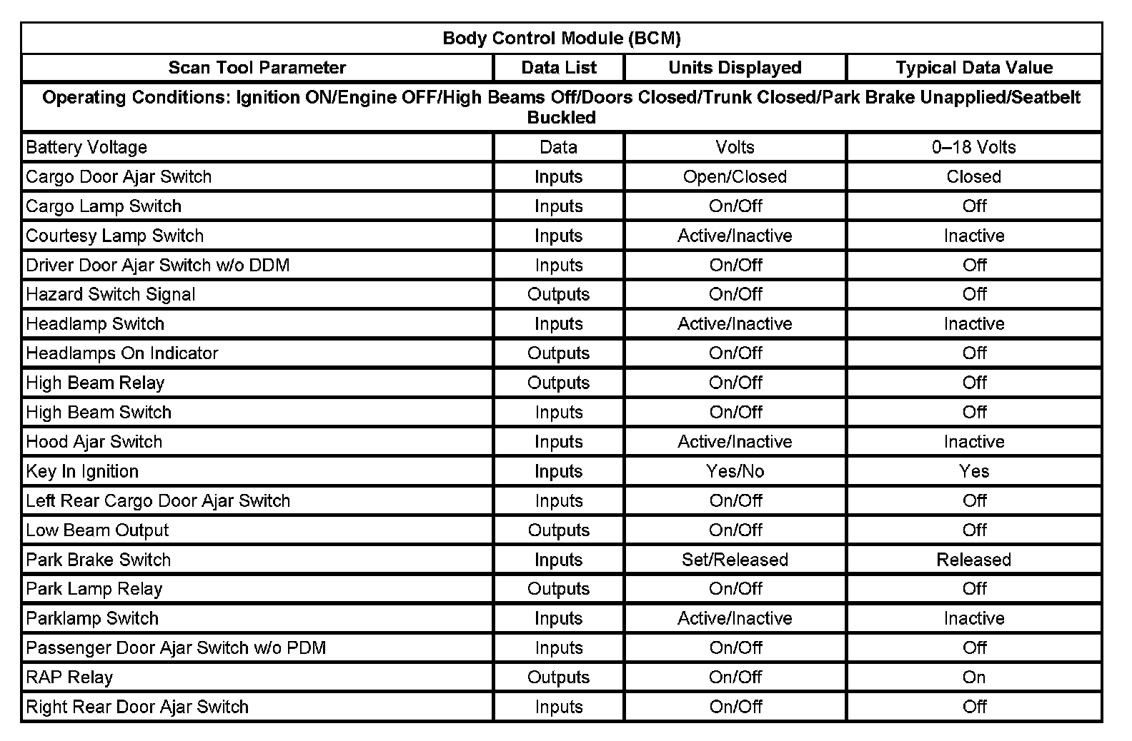 Body Control Module (BCM):