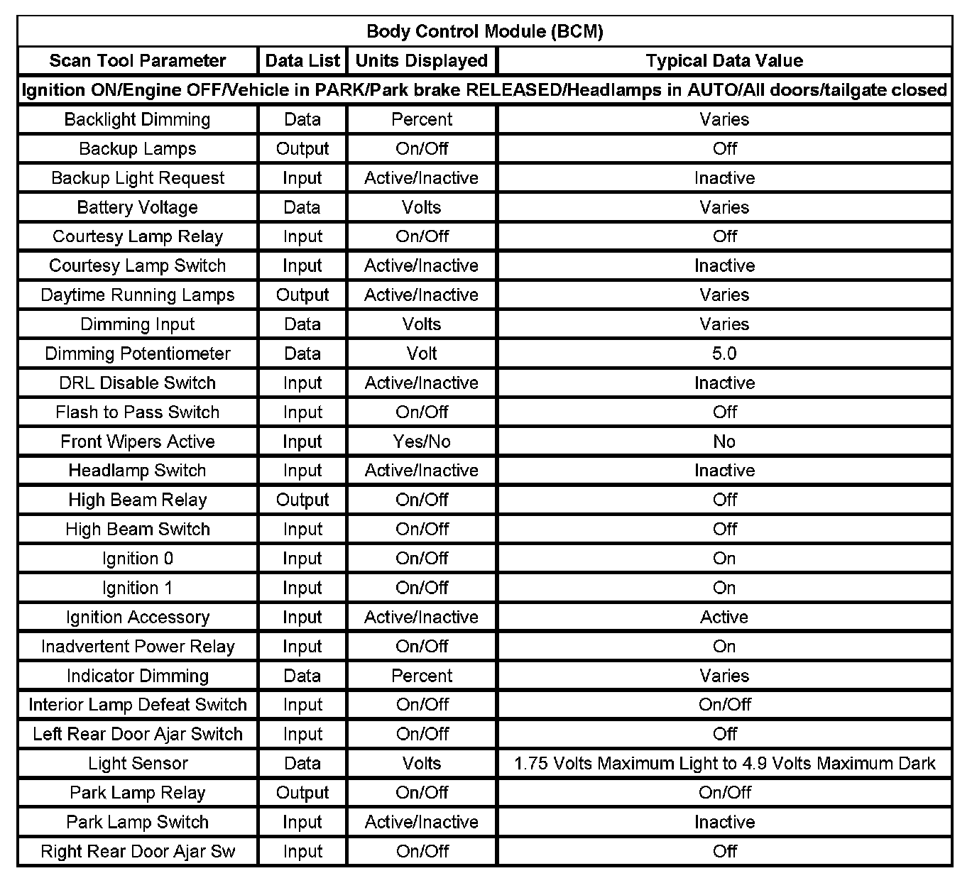 Body Control Module (BCM):