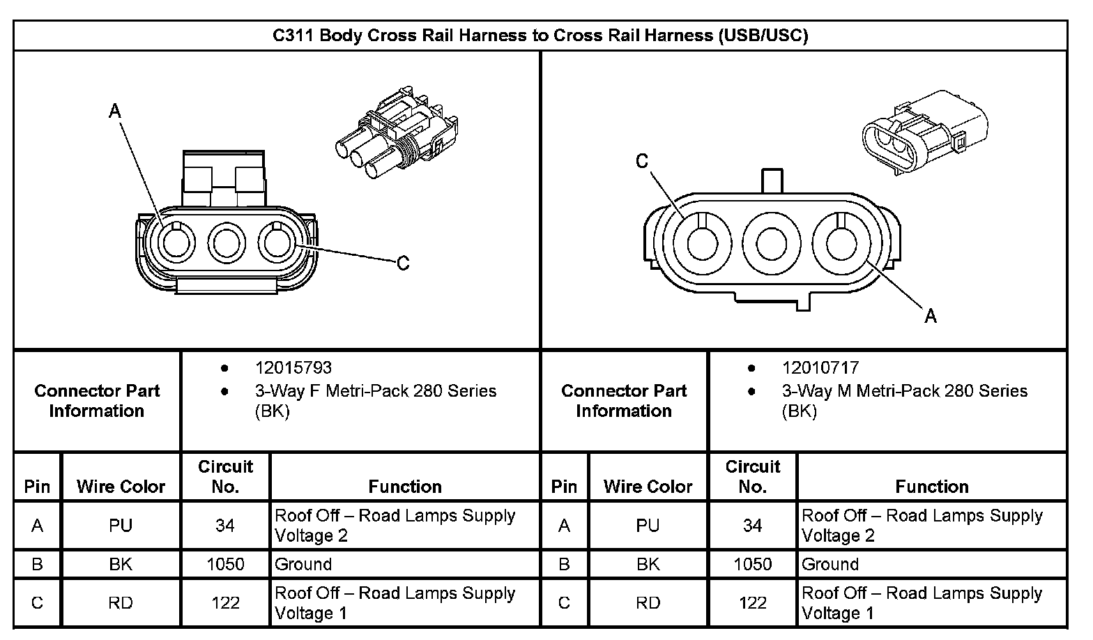 C311 Body Cross Rail Harness To Cross Rail Harness (With RPO Code USB/USC):