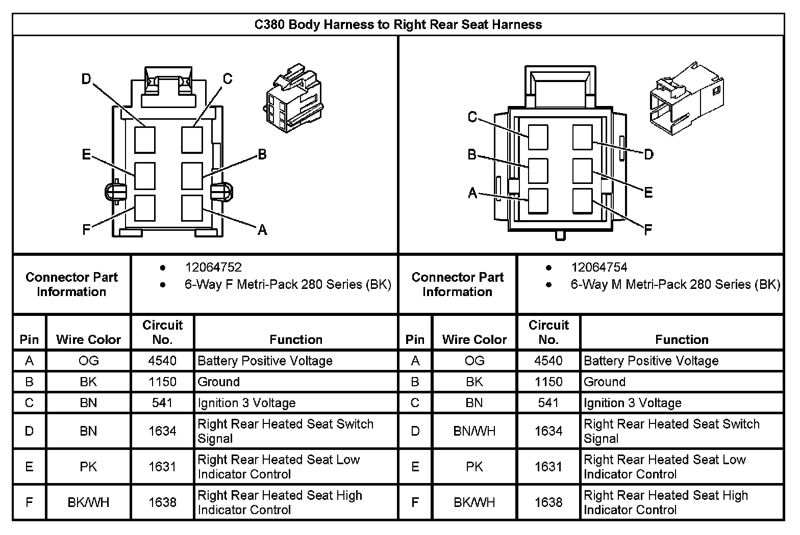 C380 Body Harness To Right Rear Seat Harness: