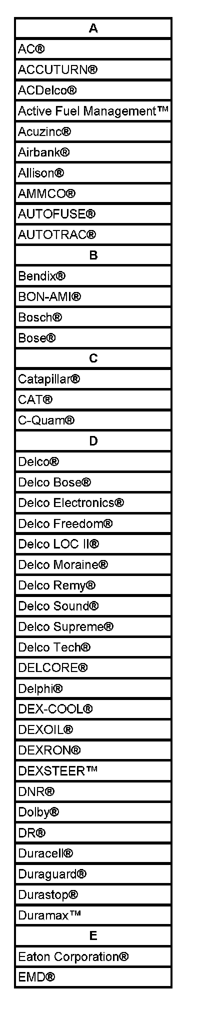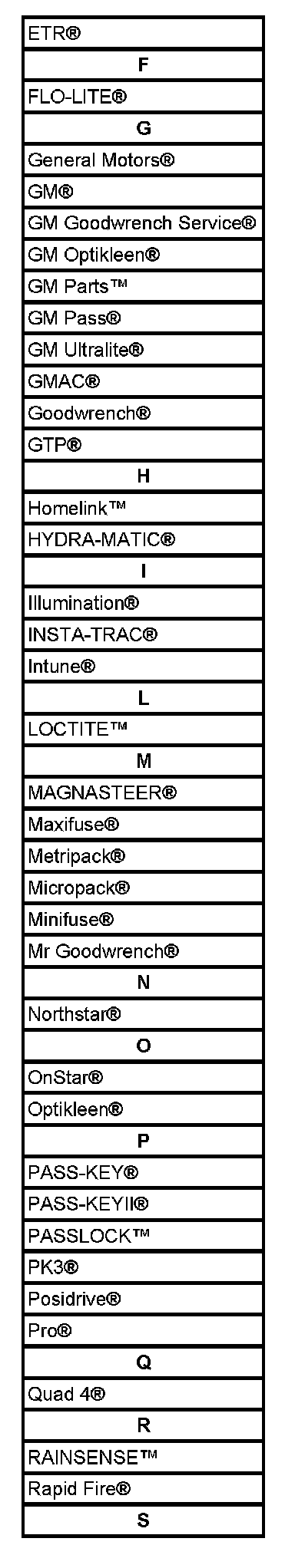 Listed are Registered Trademarks ((R)) or Non-Registered Trademarks ((TM)) which may appear in this service data.