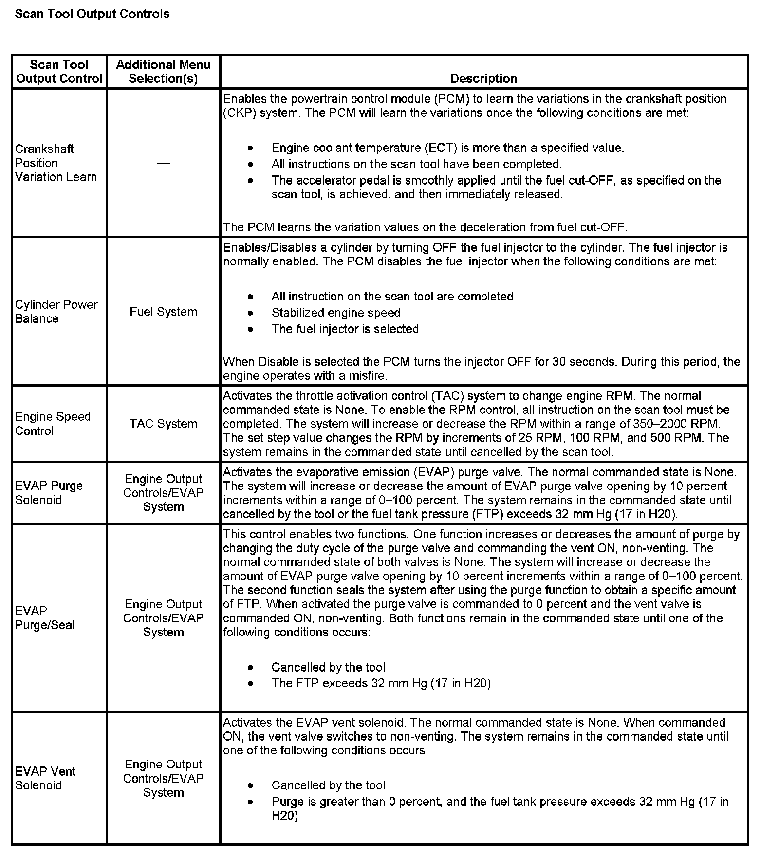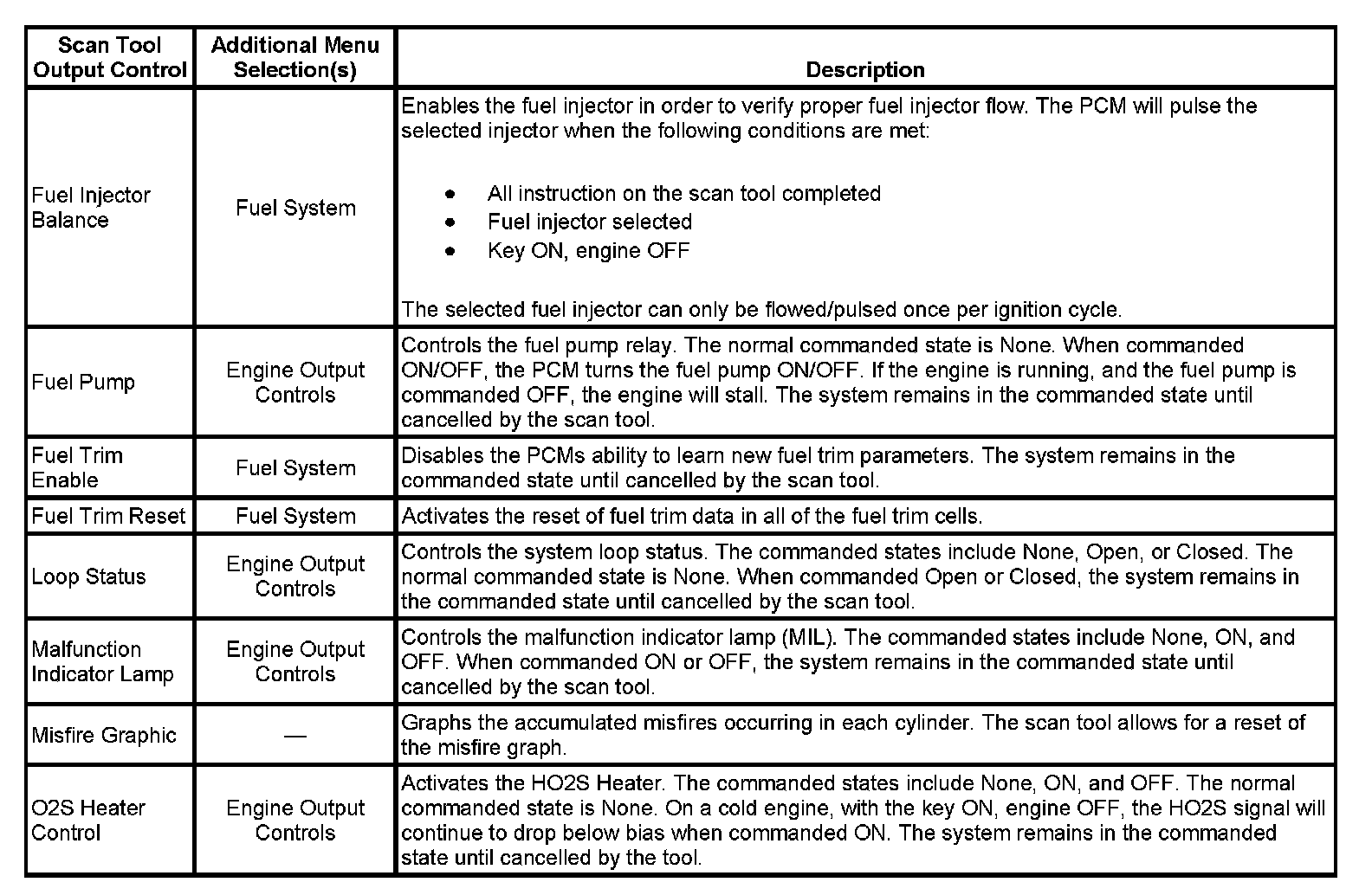 Scan Tool Output Controls