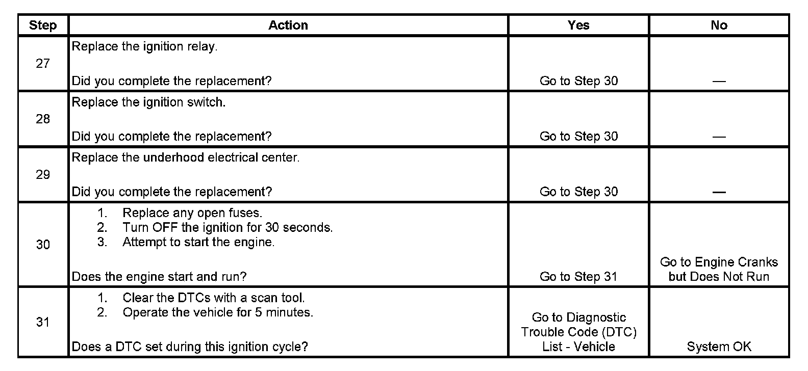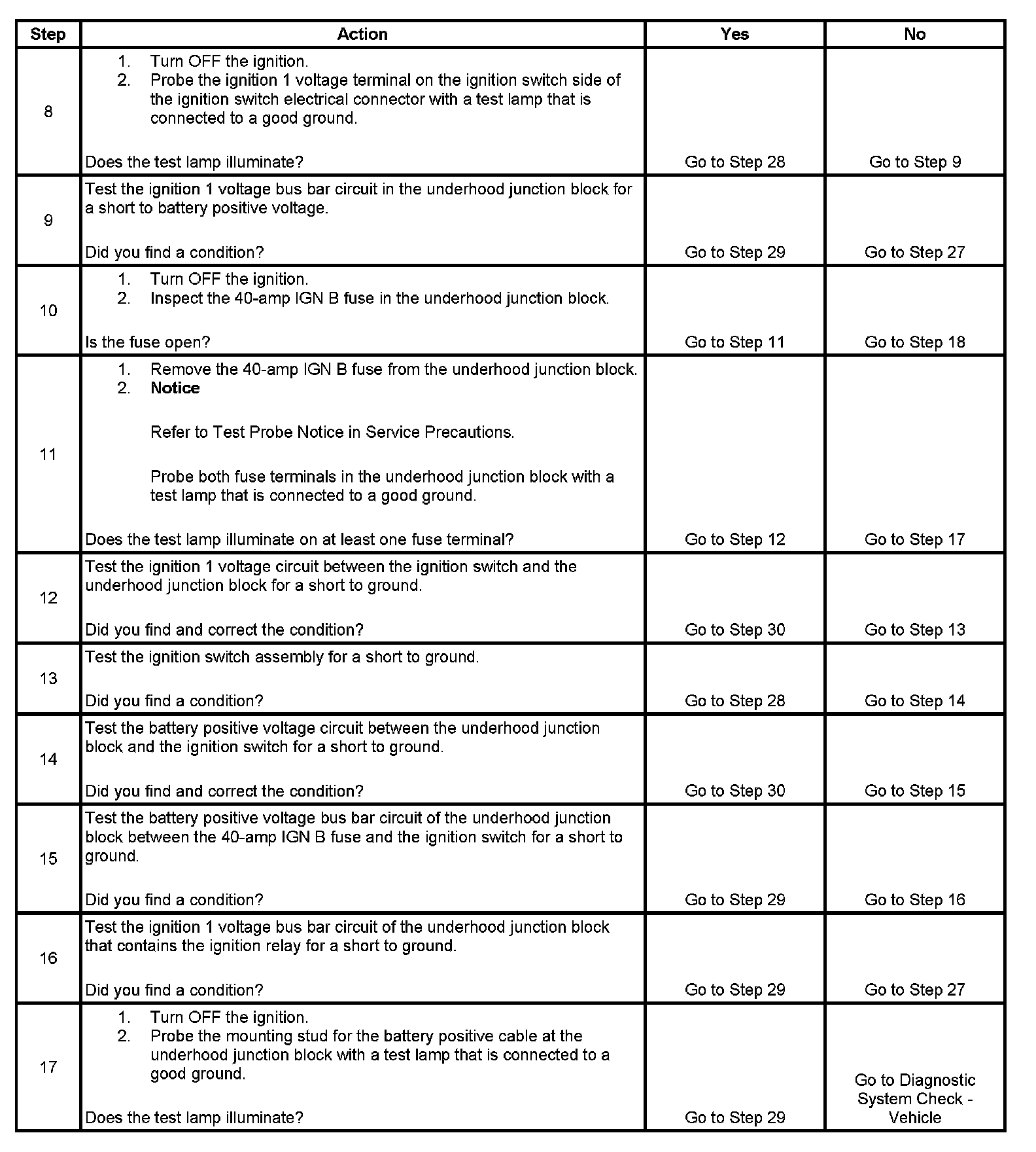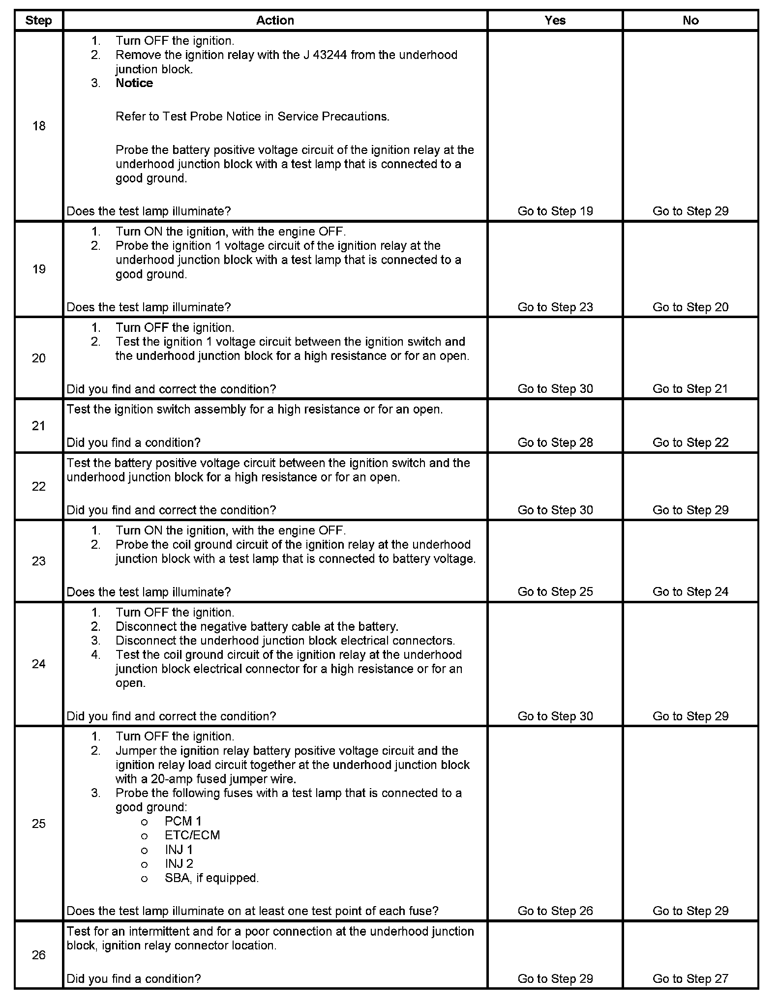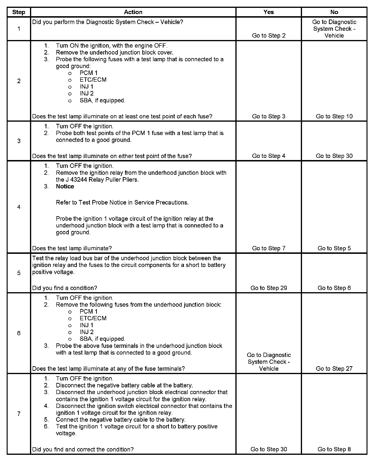 The ignition relay table assumes that the vehicle battery is fully charged. Refer to Battery Inspection/Test (Non-HP2) in Starting and Charging. Component Tests and General Diagnostics