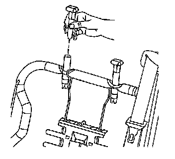 1. Install the head restraint retainers by pressing into the seat back frame until the retaining tabs snap into place at the bottom of the frame opening.