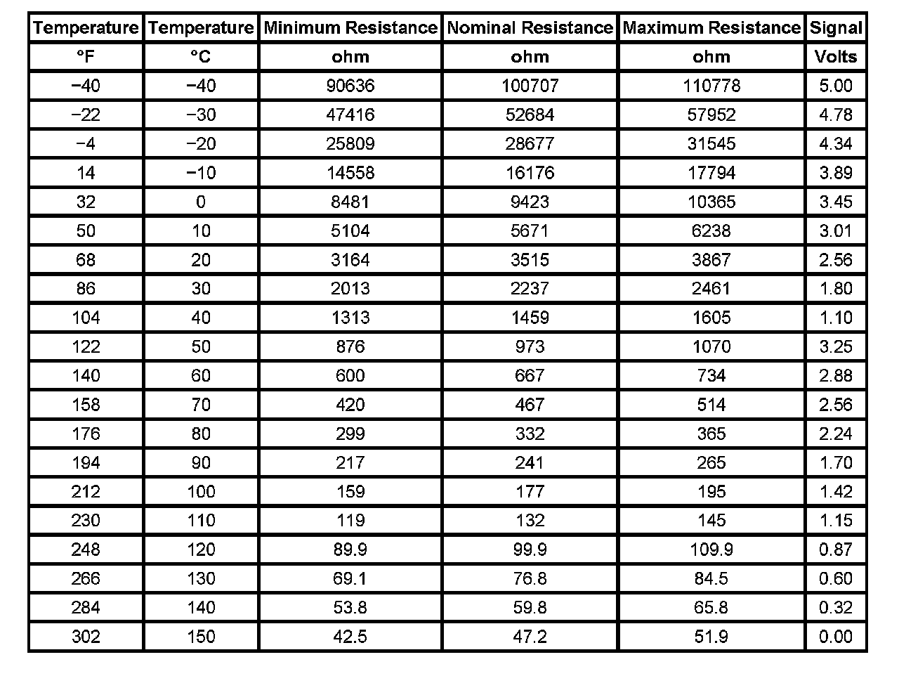 Transmission Fluid Temperature (TFT) Sensor Specifications: