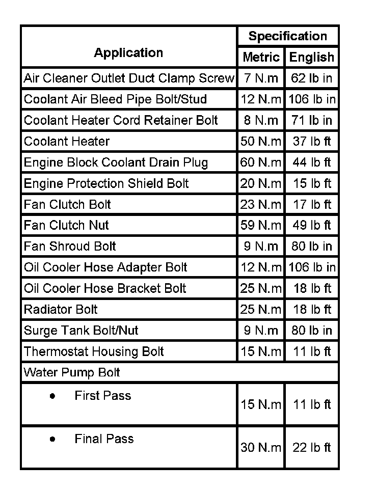Fastener Tightening Specifications: