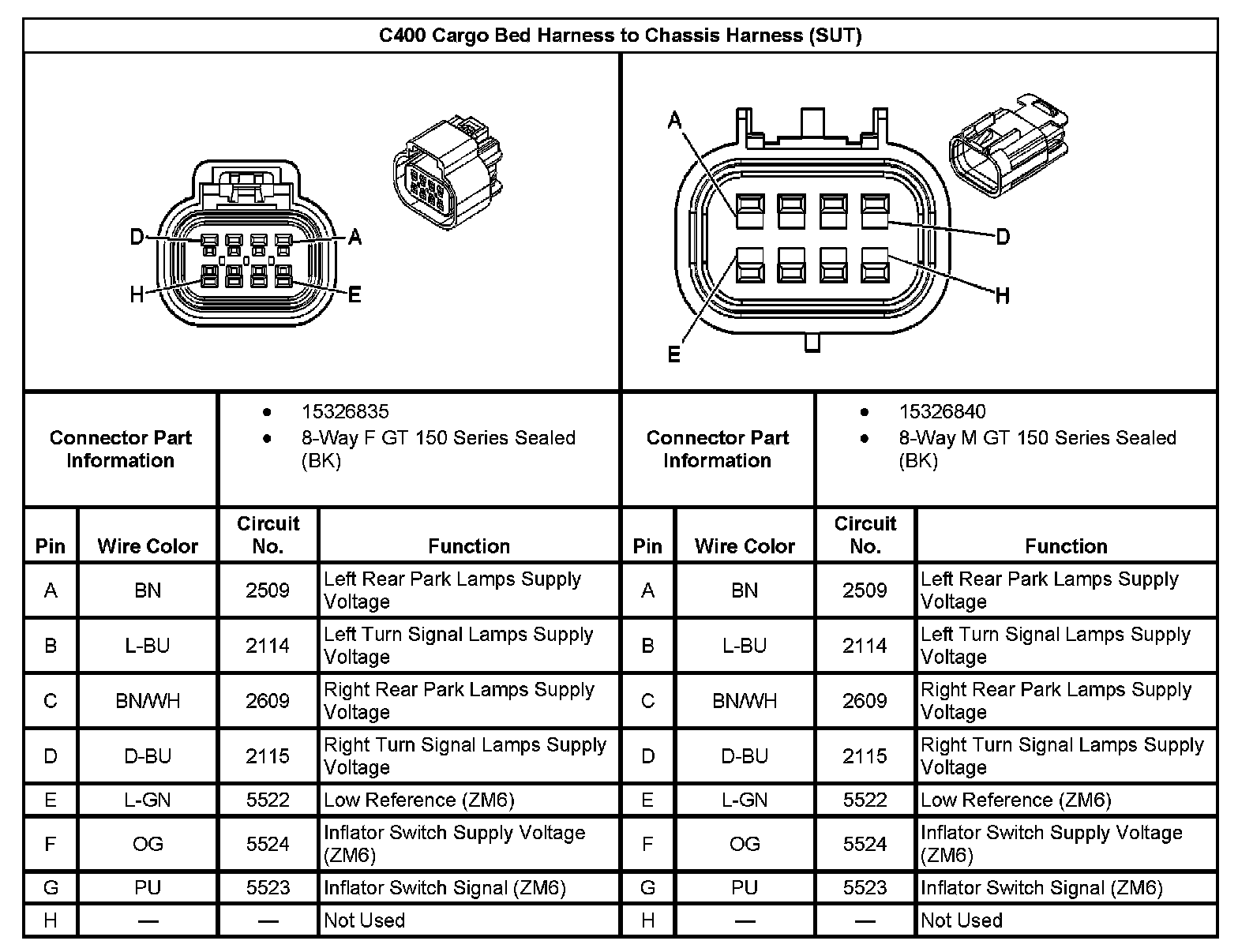 C400 Cargo Bed Harness To Chassis Harness (SUT):