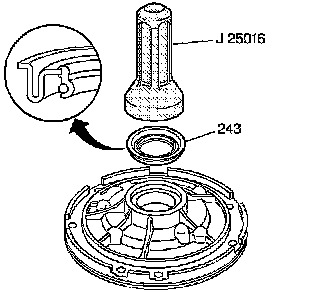 1. Using the J 25016 , install the oil seal assembly (243).