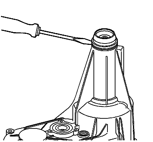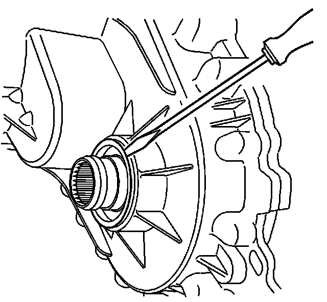 Remove the rear output shaft seal by prying it out with a flat-blade screwdriver.
