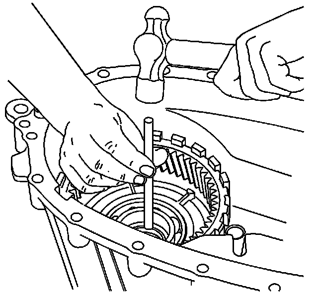 1. Using a soft-face hammer, tap on the end of the rear output shaft.