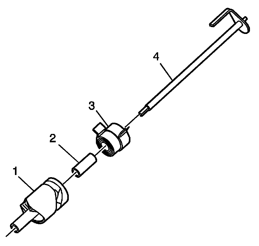 1. Rotate the other spring tab and slide the detent lever cam (1) off the shaft.