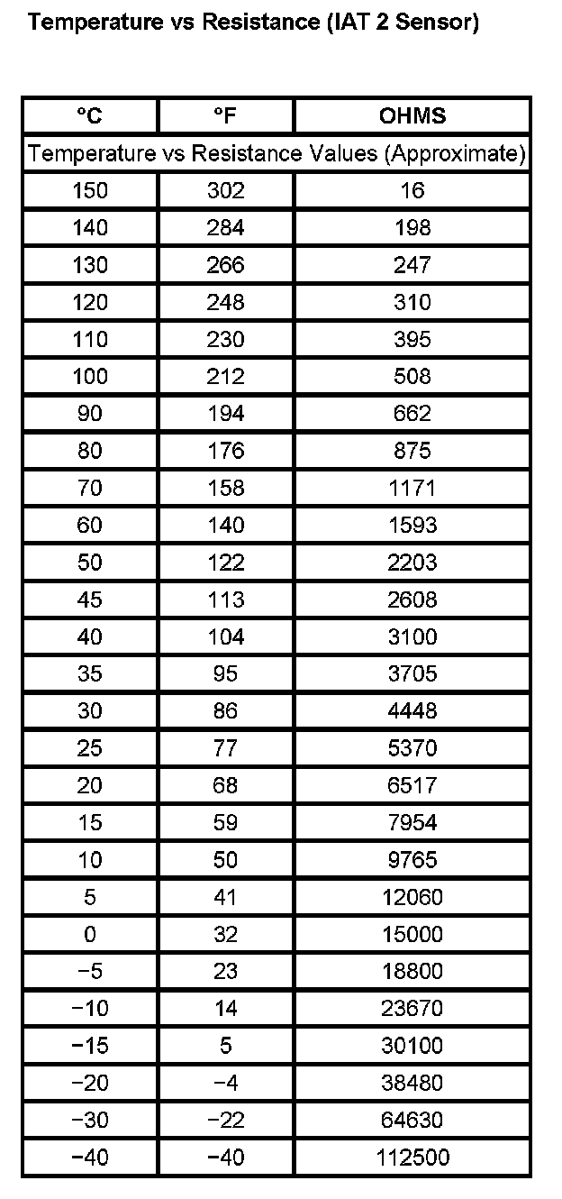 Temperature Vs Resistance (IAT 2 Sensor):