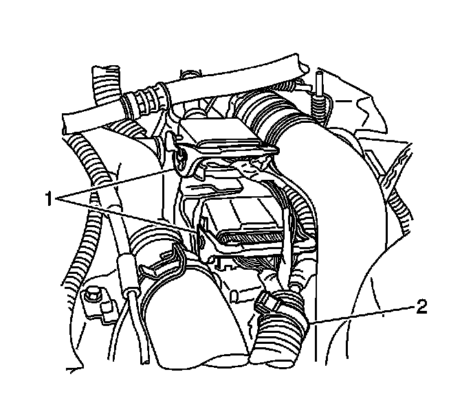 12. Connect the glow plug control module electrical connector (1,2).