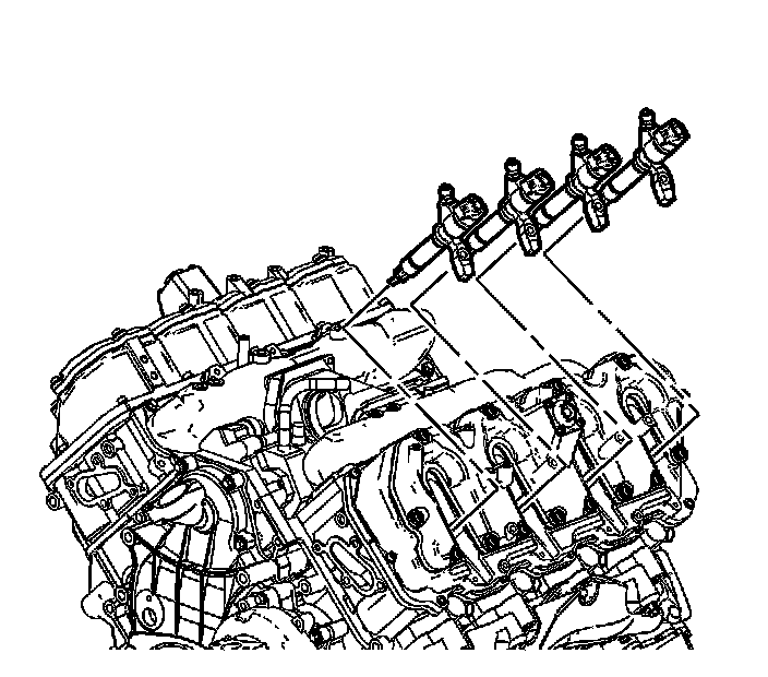 NOTE: DO NOT use compressed air to clean debris from the fuel injector inlet after the fuel line is removed. Using compressed air can allow debris to enter the fuel injector inlet and damage the fuel injector.