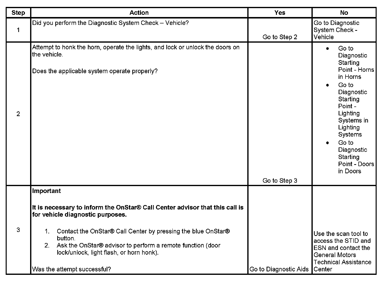 OnStar Call Center Remote Function Requests Inoperative